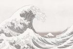 Acest tapet extraordinar este o versiune nouă, grafică, a celebrei xilogravuri a lui Hokusai cu un val în afara Kanagawa. Varianta de culoare White vine în alb și gri plăcut.