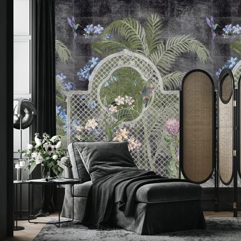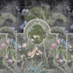 Modelul de tapet Verdant Mosaic (dark) se afla, din punct de vedere stilistic, la granita dintre eclectic si industrial. Elementele vegetale sunt contruite cu infinita atentie la detalii, intr-un mod delicat si feminin, cu forme rotunde si suave. Prin constrast, fundalul este reprezentat de un zid inalt, care aminteste de un baraj din ciment. Cele doua opuse sunt reunite prin intermediul unor porti dantelate, care ii permit privitorului sa priveasca dincolo de ele.