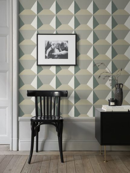 Tapetul Gabriel grey este un tapet cu romburi elegante, cu puncte aurii. Gabriel se potrivește bine cu modelul nostru Gustav