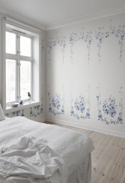 Marieberg este o operă de artă murală care arată ca un decor de porțelan frumos pictat manual. Frunzișul formează un