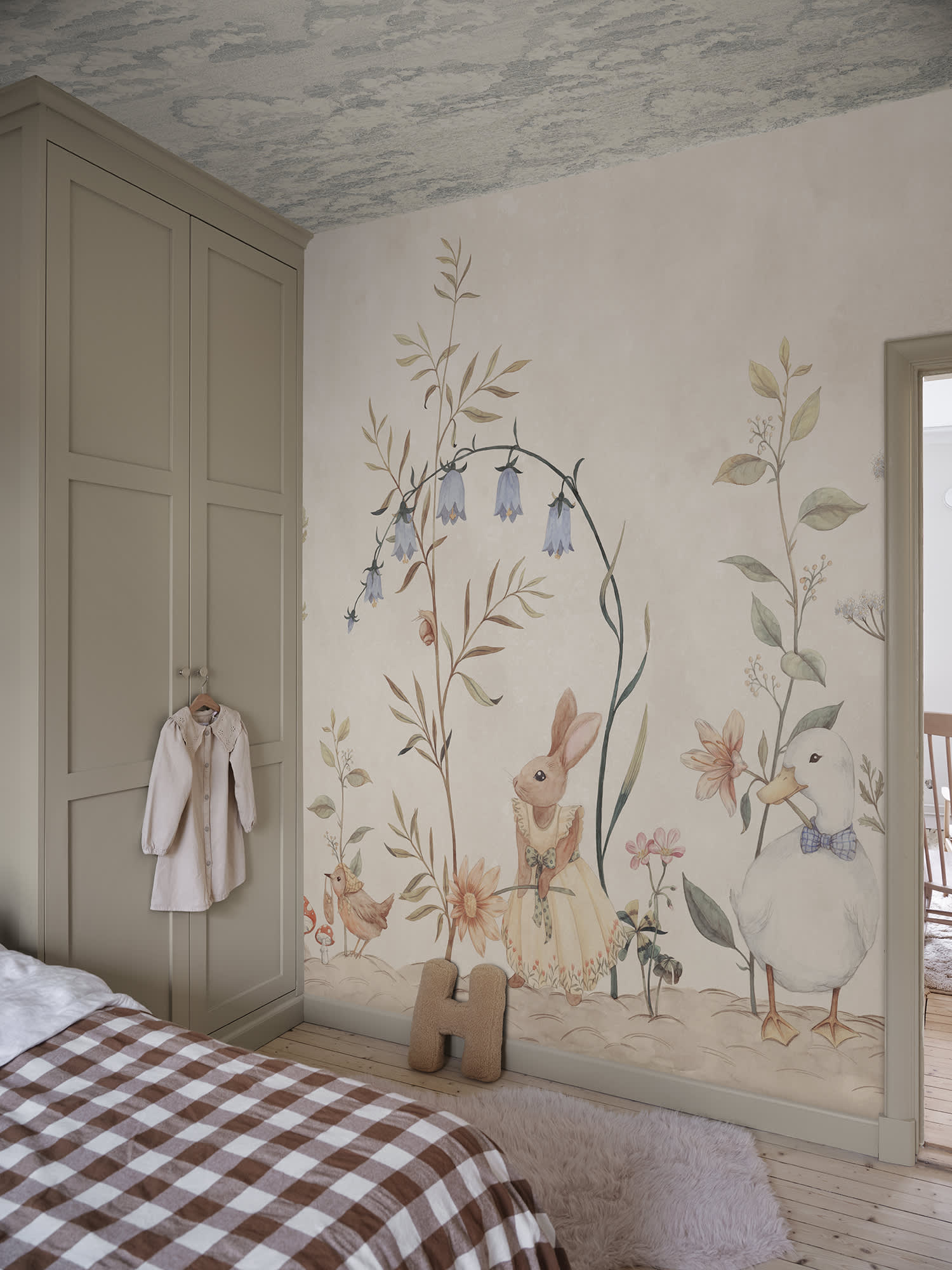 Adaugă un strop de magie în camera copilului cu acest tapet bej încântător. Design delicat cu ilustrații de animale și flori, perfect pentru un decor cald și primitor.