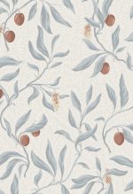 Ramuri frumos pictate manual cu fructe de lychee într-o mare de frunze mici. Un design atemporal realizat cu o tehnică tradițională de imprimare. Această metodă conferă tapetului o suprafață texturată și un caracter vibrant.