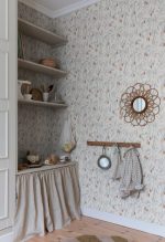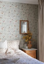 Sanna light blue este un tapet decorat cu flori de mazăre dulce care plutesc grațios pe deasupra peretelui. Floarea a