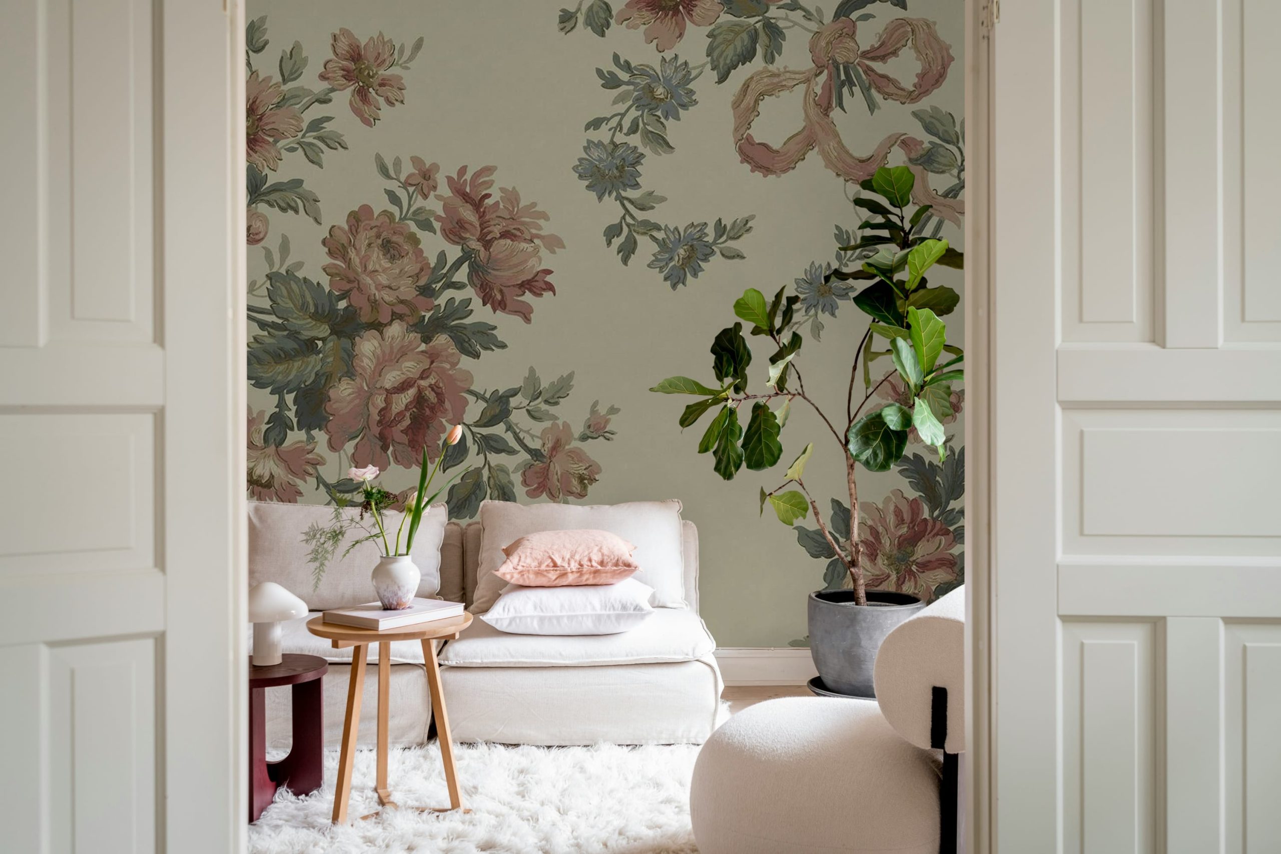 Tapetul Vintage Bow prezintă o ghirlandă florală maiestuoasă, împodobită cu o fundă elegantă, care curge grațios pe pereții dvs. Bazat pe un design original de tapet de epocă, acesta a fost frumos refăcut într-un mural captivant. Poetic romantic! Culoarea Pink este îmbrăcată în nuanțe fermecătoare de bej, roz, albastru și verde.