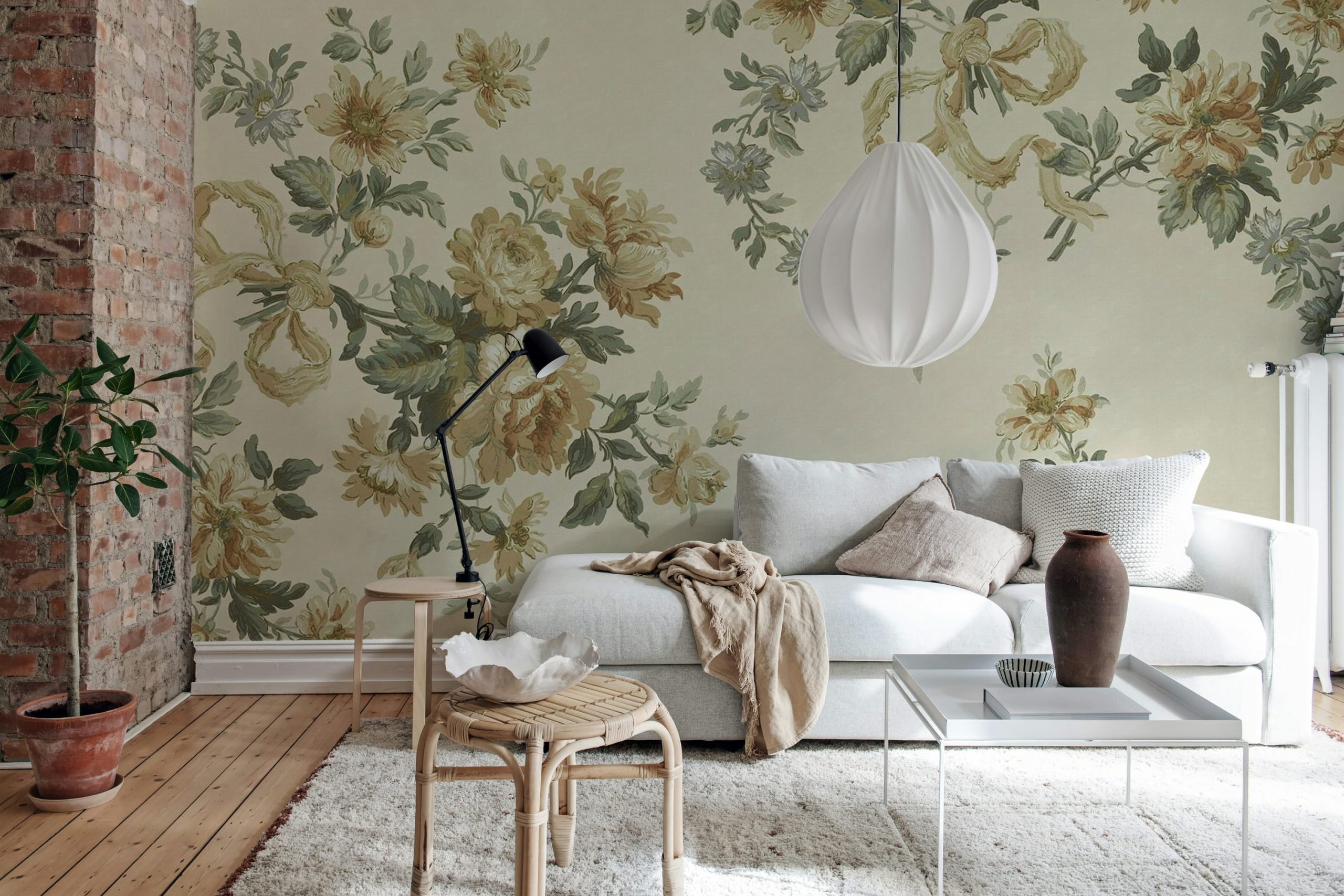 Tapetul Vintage Bow prezintă o ghirlandă florală maiestuoasă, împodobită cu o fundă elegantă, care curge grațios pe pereții dvs. Bazat pe un design original de tapet de epocă, acesta a fost frumos refăcut într-un mural captivant. Poetic romantic! Culoarea Yellow este îmbrăcată în nuanțe fermecătoare de bej, galben, albastru și verde.