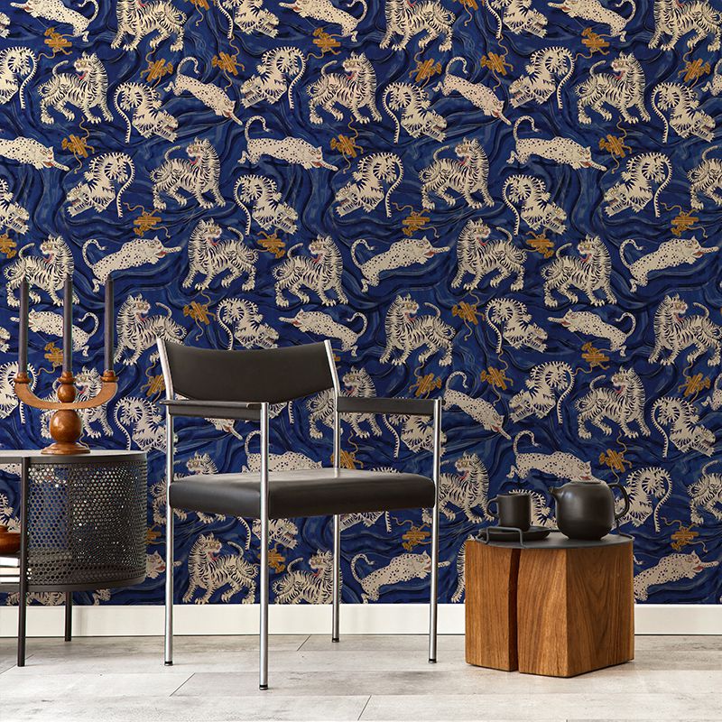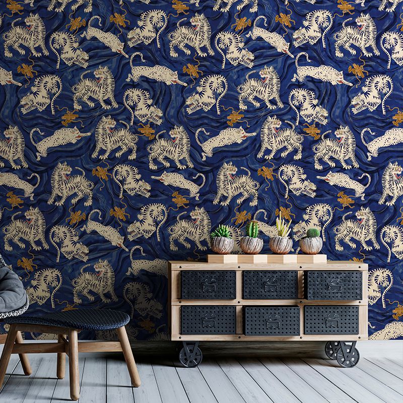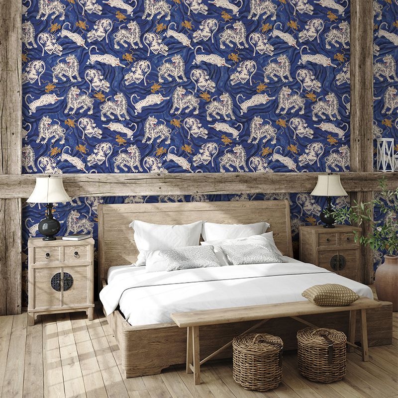 Adăugați un strop de eleganță exotică în casa dumneavoastră cu Waghoba Mindnight Sky. Acest tapet prezintă un model complex de tigri albi pe un fundal albastru închis cu un aspect marmorat. Designul este inspirat de cultura asiatică și creează o atmosferă sofisticată și plină de farmec. Waghoba Mindnight Sky este perfect pentru a transforma o cameră de zi, un dormitor sau o sală de mese într-un spațiu unic și memorabil.