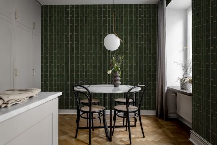 Wall of Tiles, Dark Green are un frumos motiv de faianță în nuanțe bogate și profunde de verde, creând un perete uimitor și unic, care va face o declarație în orice spațiu. Motivul faianței este versatil, făcându-l perfect pentru orice cameră din casa ta, de la sufragerie la bucătărie și până în dormitor. Indiferent dacă doriți să creați un perete caracteristic sau să adăugați un plus de culoare spațiului dvs., tapetul Wall of Tiles, Dark Green este alegerea perfectă.