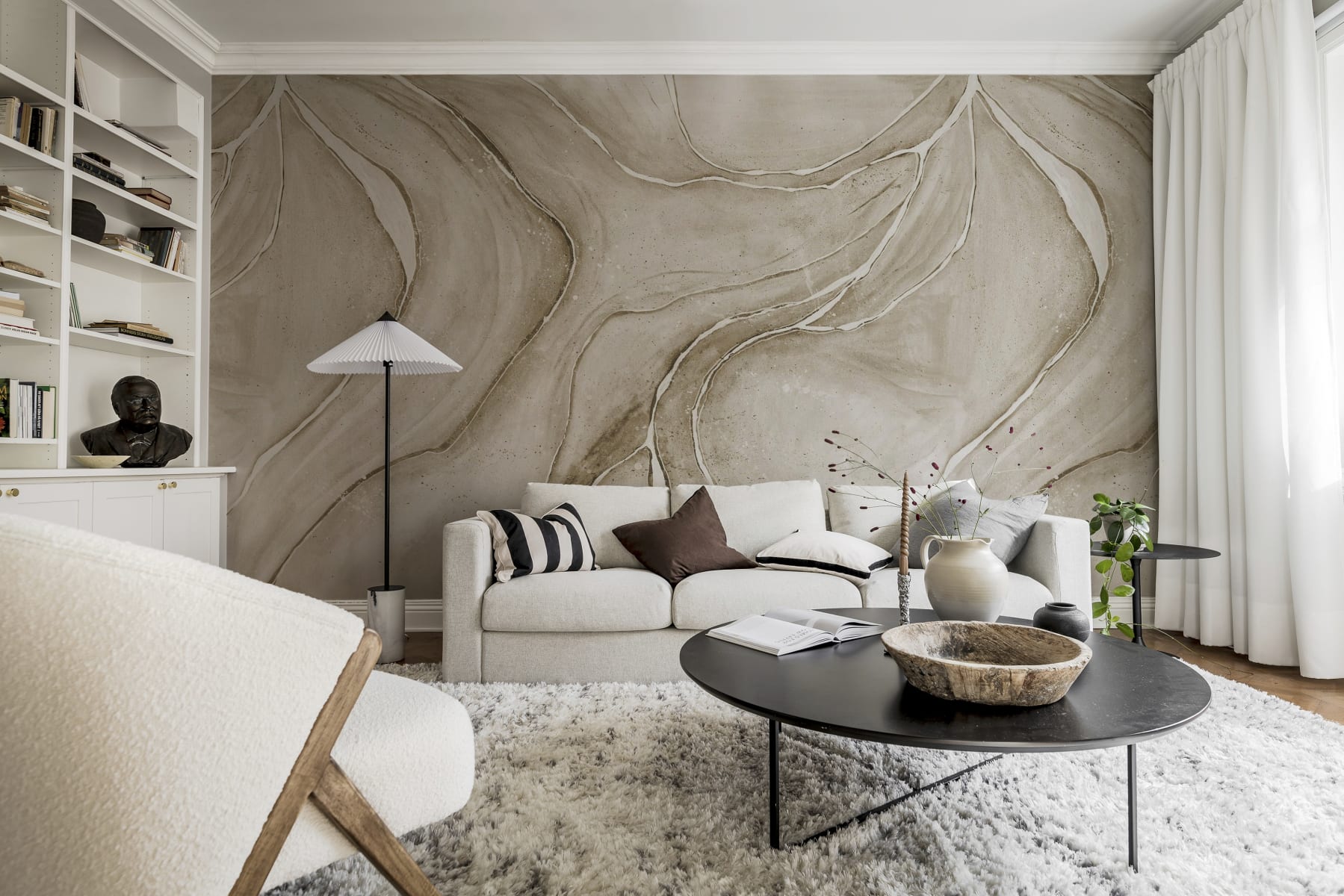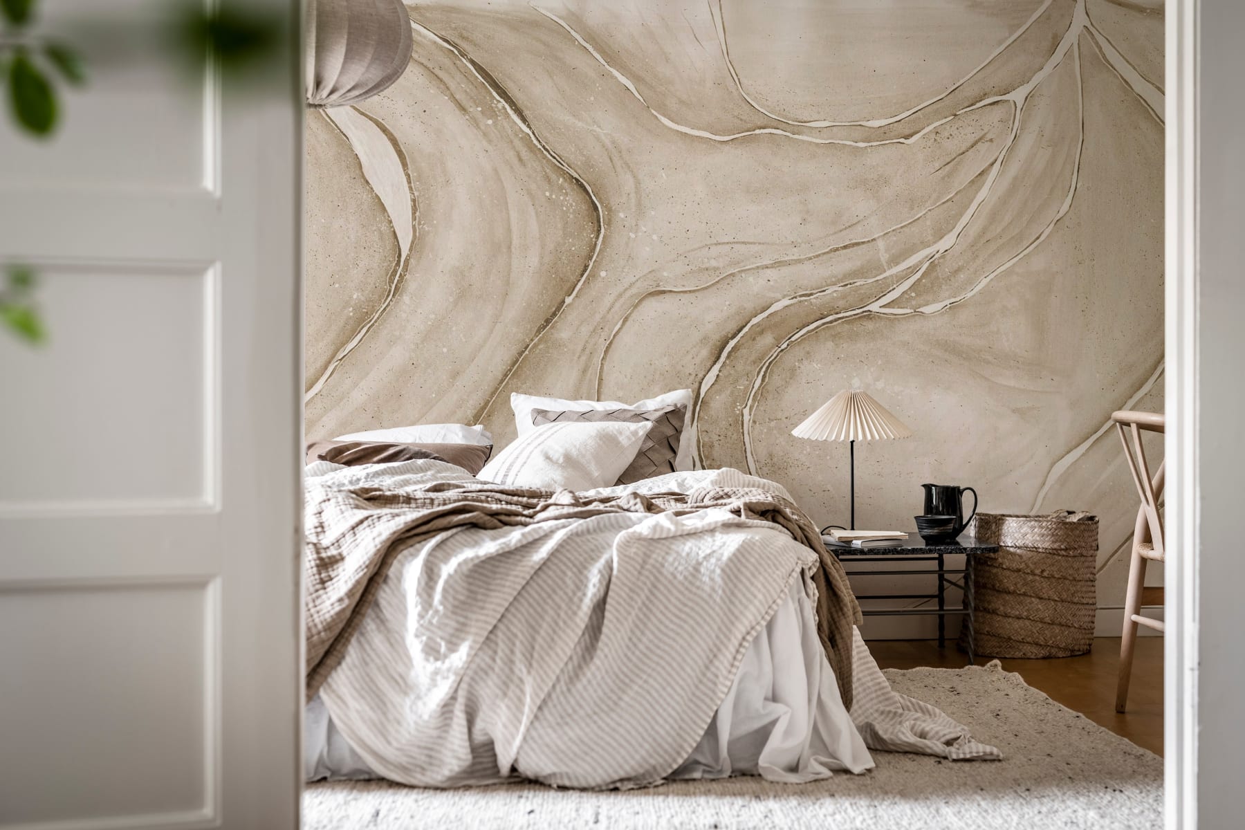 „Watercolor Flow, Beige” este un tapet excepțional care evocă fluiditatea și grația picturii în acuarelă, cu vârtejuri moi și curbe blânde care par să se desfășoare organic pe suprafață. Nuanțele de bej, combinate cu accente de crem, creează o paletă de culori caldă și primitoare. Designul acestui tapet seamănă cu modelele naturale create de depozitele minerale în formațiunile stâncoase, fiecare strat integrându-se subtil în următorul. Efectul general este unul de mișcare liniștită, făcându-l fundalul perfect pentru un spațiu care necesită atât calm, cât și un strop de sofisticare. Ideal pentru un dormitor confortabil, un living chic sau chiar o baie elegantă pentru oaspeți.