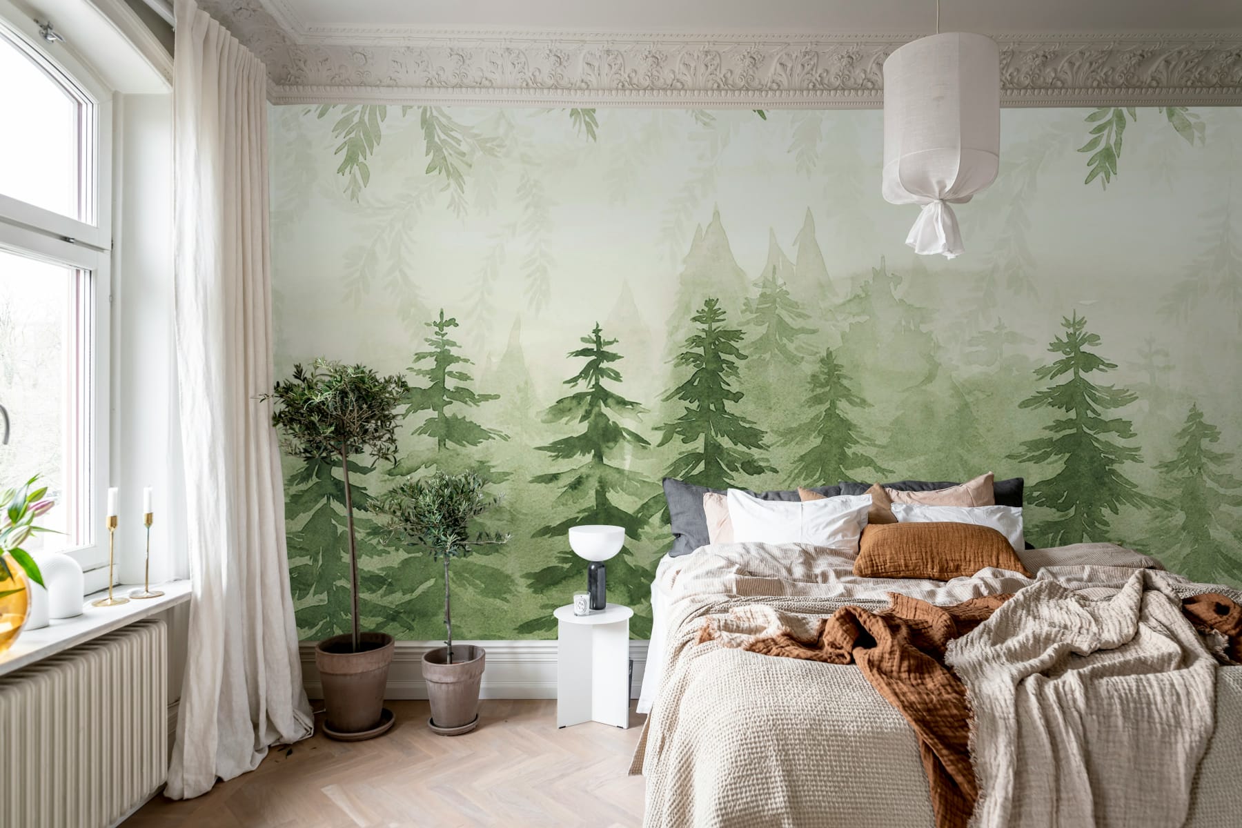 Home Tapet și Fototapet Watercolor Forest, Green, Rebel Walls