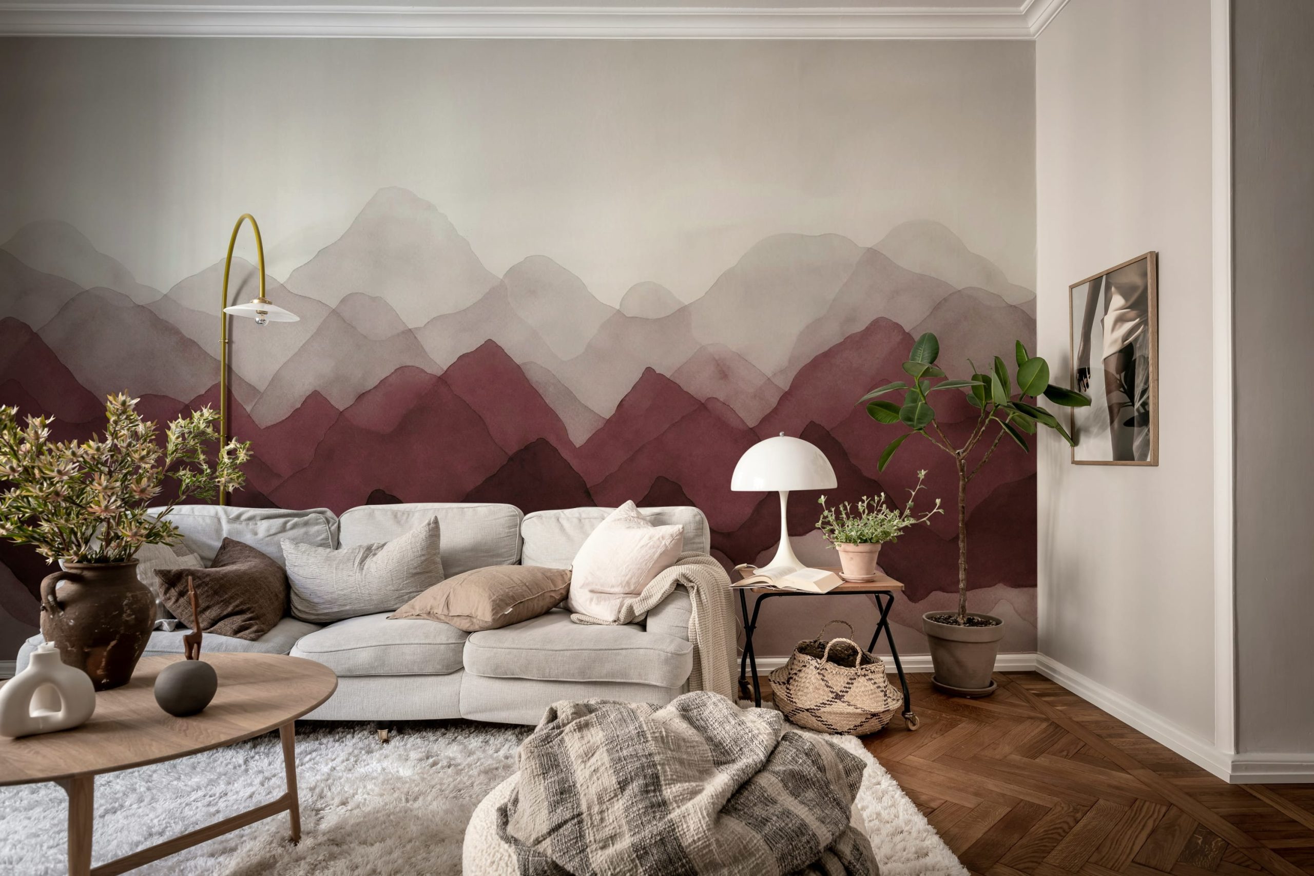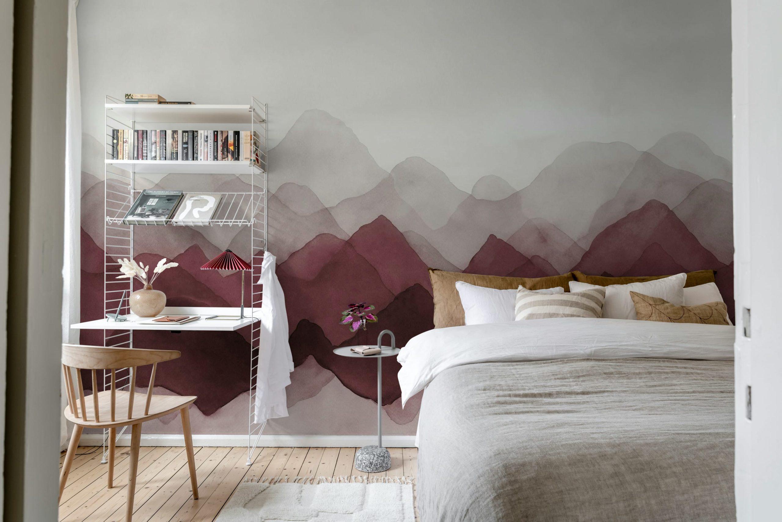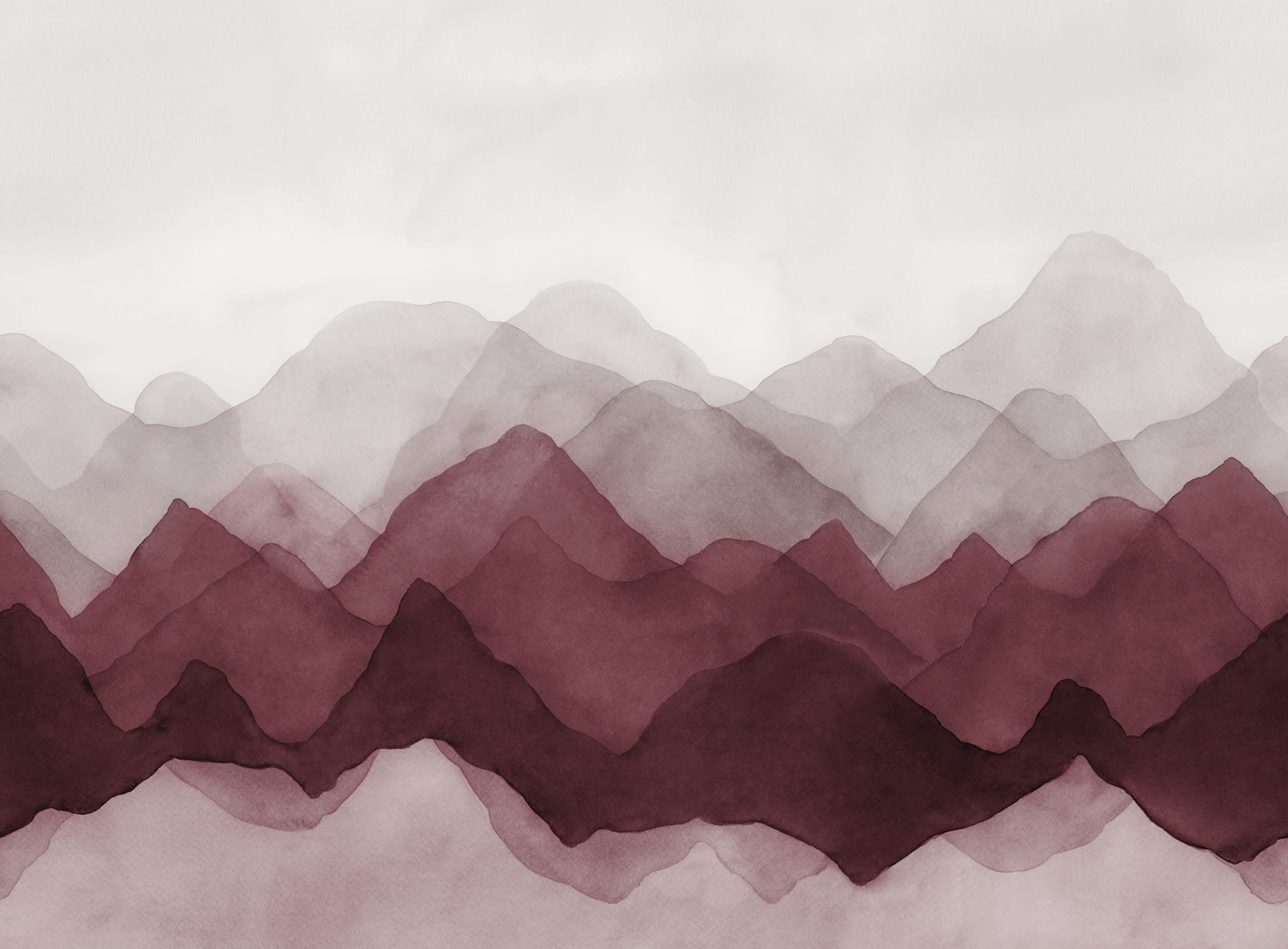 Home Tapet și Fototapet Watercolor Mountain, Burgundy, Rebel Walls
