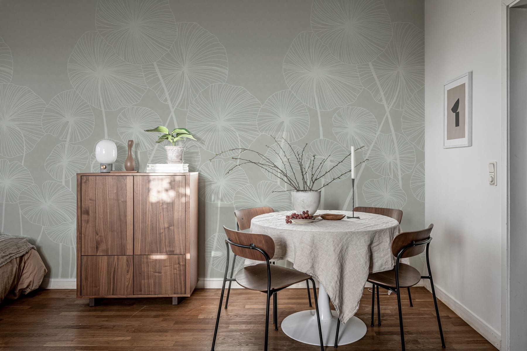 Tapetul Waterlily Forest, Beige aduce frumusețea subtilă a frunzelor de nufăr pe pereții dvs., cu linii complicate și nuanțe blânde de bej. Paleta de culori blândă și neutră evocă un sentiment de pace și simplitate, făcându-l perfect pentru dormitoare, camere de zi sau orice spațiu în care doriți să cultivați o ambianță senină. Modelul delicat de frunze adaugă o notă de eleganță inspirată din natură, în timp ce tonurile discrete îi asigură o îmbinare perfectă cu o varietate de stiluri interioare. Waterlily Forest, Beige este ideal pentru cei care caută un design rafinat, inspirat din natură, care adaugă o sofisticare liniștită oricărei încăperi.