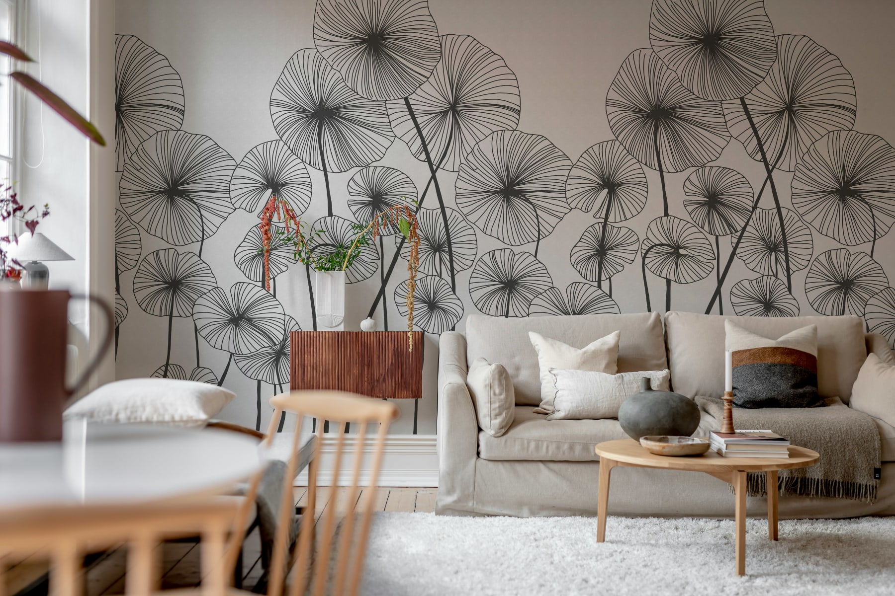 Tapetul Waterlily Forest, Gray prezintă un aranjament grațios de frunze de nufăr, conturate în linii fine, minimaliste, pe un fundal gri blând. Paleta blândă și naturală creează o senzație calmă și aerisită, perfectă pentru livinguri, dormitoare sau spații în care se dorește o notă de eleganță liniștită. Repetiția subtilă a motivelor nufărului conferă designului o estetică modernă, dar organică, îmbinându-se frumos atât cu interioarele contemporane, cât și cu cele clasice. Waterlily Forest, Gray este ideal pentru cei care caută un decor liniștit, inspirat din natură, cu un farmec rafinat și sofisticat.