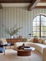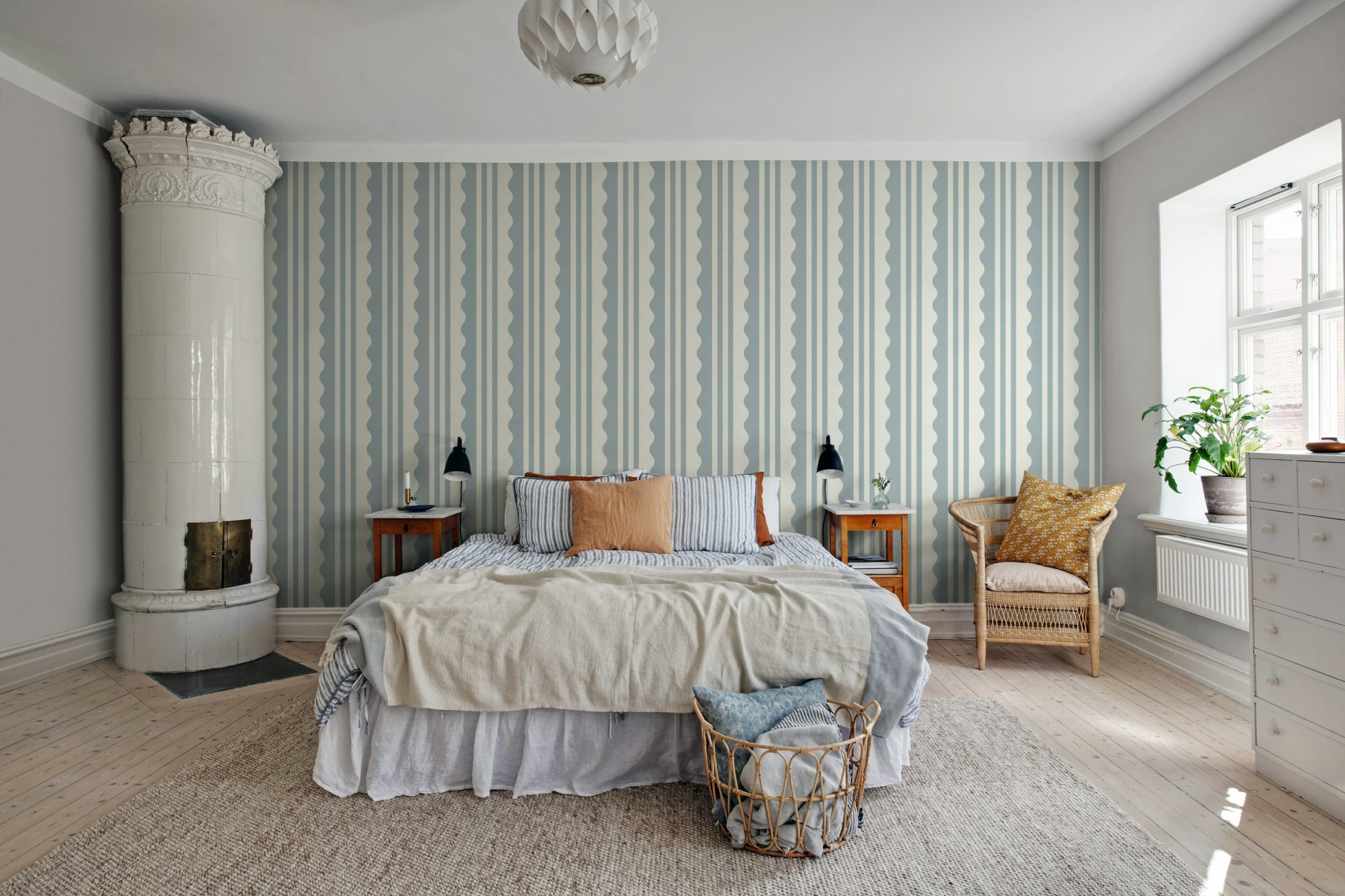 Tapet cu dungi ondulate albastre, ideal pentru un interior modern și elegant. Creează un efect vizual unic, adăugând un plus de personalitate oricărei camere.