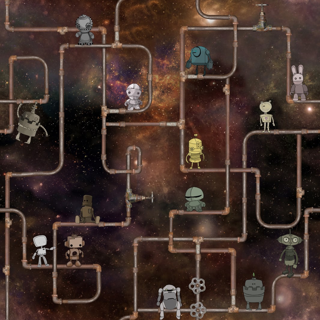 Chiar și la prima vedere a acestui fototapet cu roboți mici, puteți vedea diferitele lor aspecte și caracteristici. Găsește-ți preferatul.