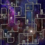 Robotii pregătesc ceva, tu decizi ce și de ce. În fundal, vedem un spațiu spectaculos în violet, verde, negru și albastru.