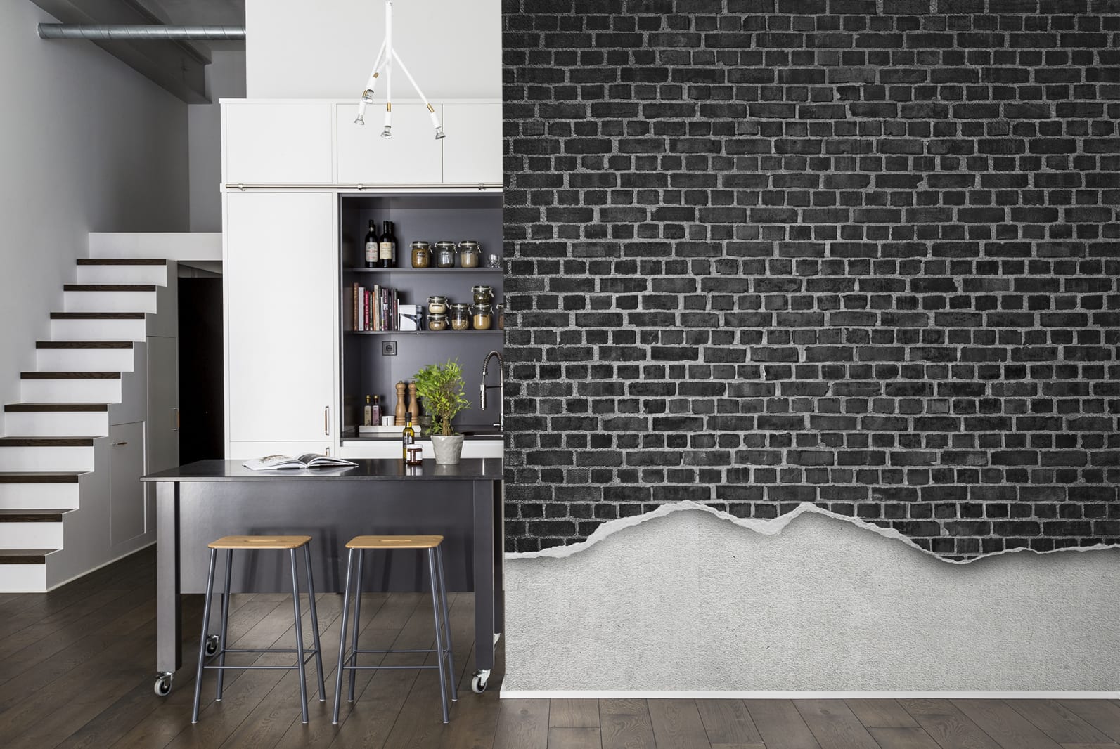Well-Worn Brick Wall, Black, Rebel Walls