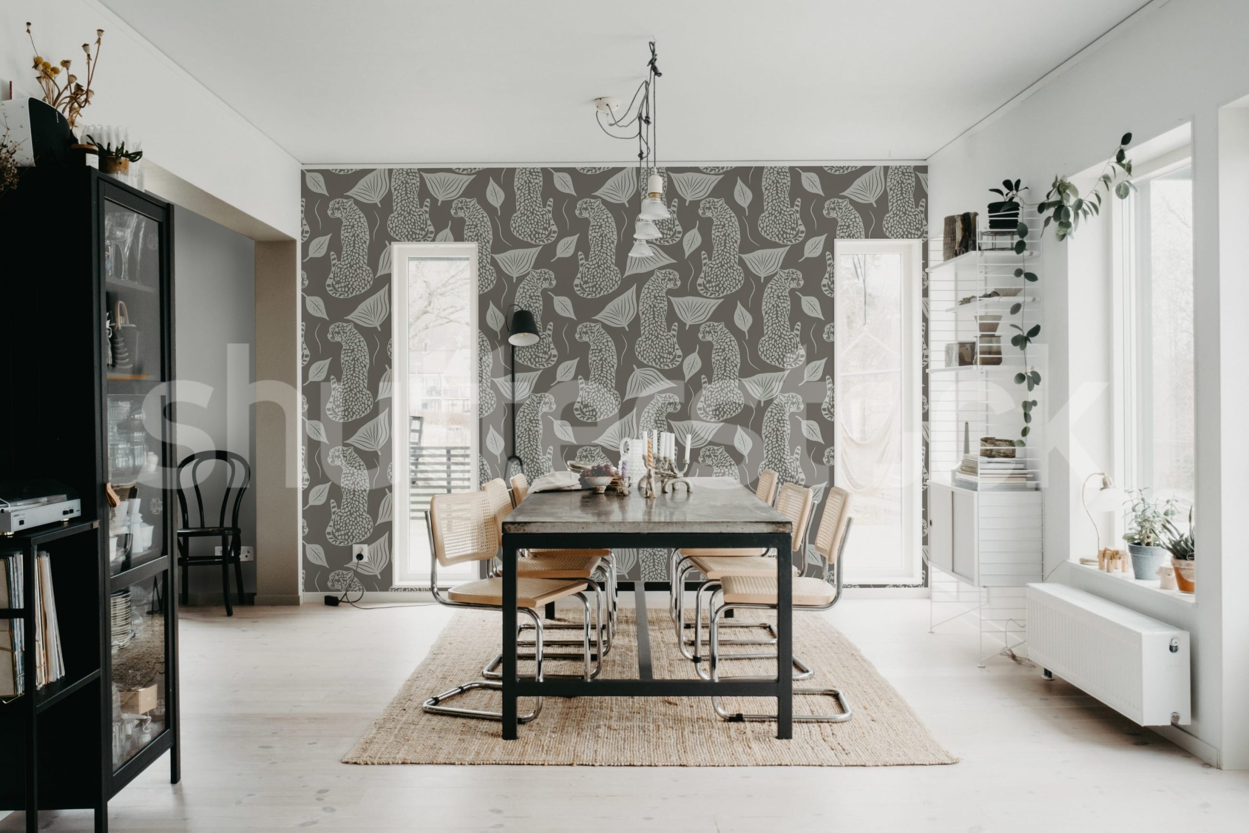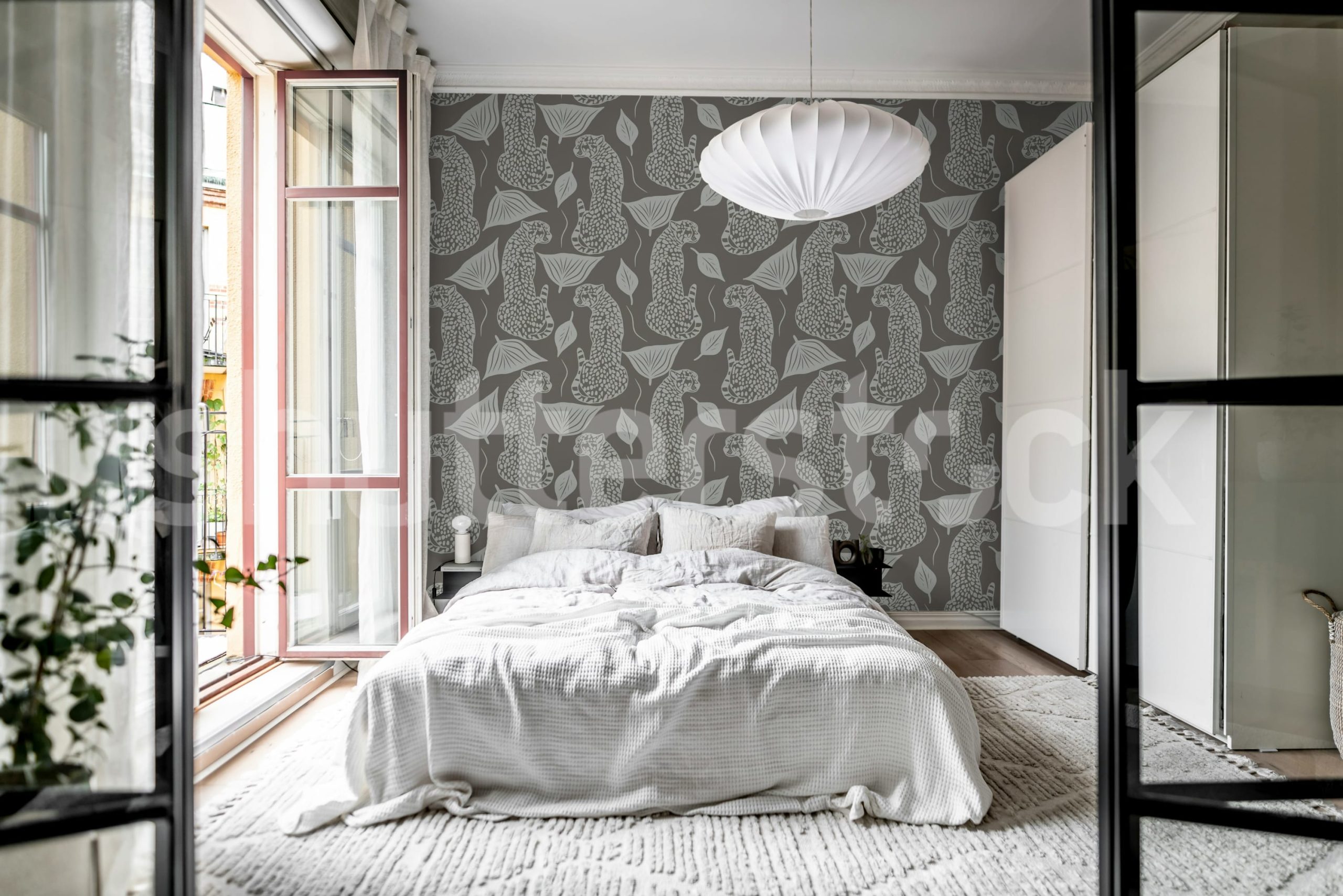 Tapetul cu imprimeu de leopar gri adaugă un stil sofisticat oricărei încăperi. Ideal pentru living, dormitor sau birou. Creează un spațiu primitor și elegant.