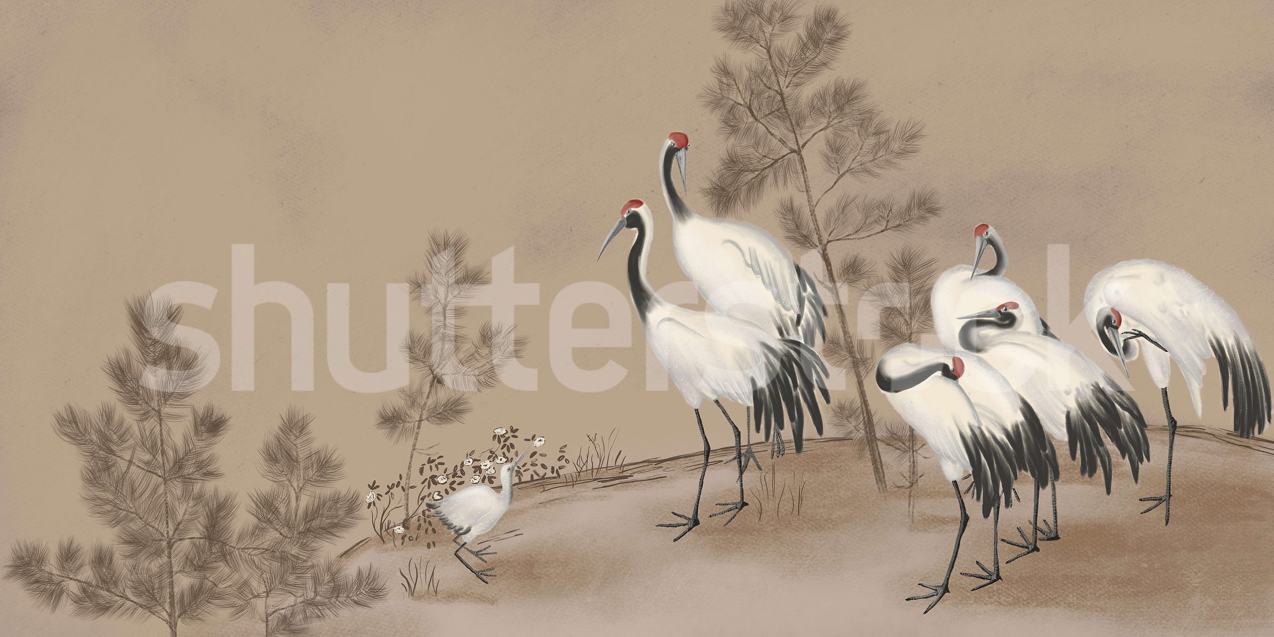 Whispering Cranes, Beige, Rebel Walls