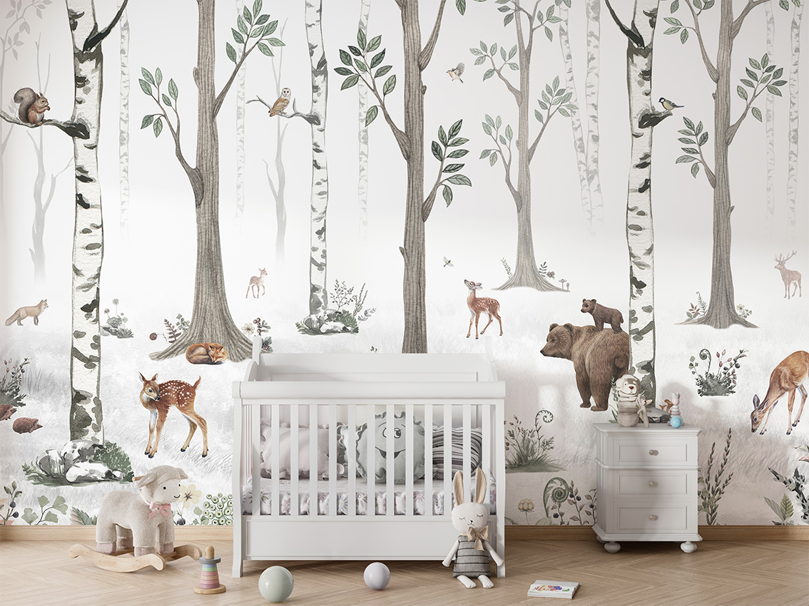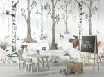 Tapetul cu model de pădure albă este perfect pentru a crea o atmosferă liniștită și primitoare în orice cameră. Designul minimalist cu copaci, animale și flori oferă o senzație de natură și prospețime. Tapetul este ușor de aplicat și de întreținut, ideal pentru decorarea casei tale.