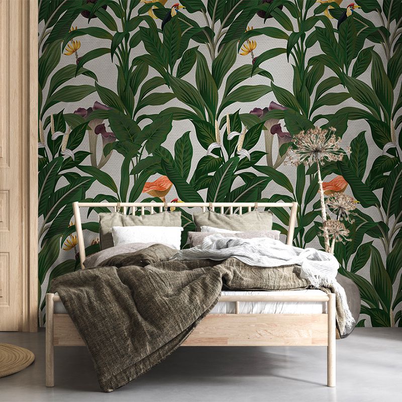Aduceți o bucată din junglă tropicală în casa dumneavoastră cu White tropical story. Acest tapet unic prezintă un design vibrant și luxuriant, cu frunze tropicale luxuriante, flori delicate și păsări exotice. Culoarea sa elegantă și designul său elegant vor adăuga o notă de rafinament oricărei camere.