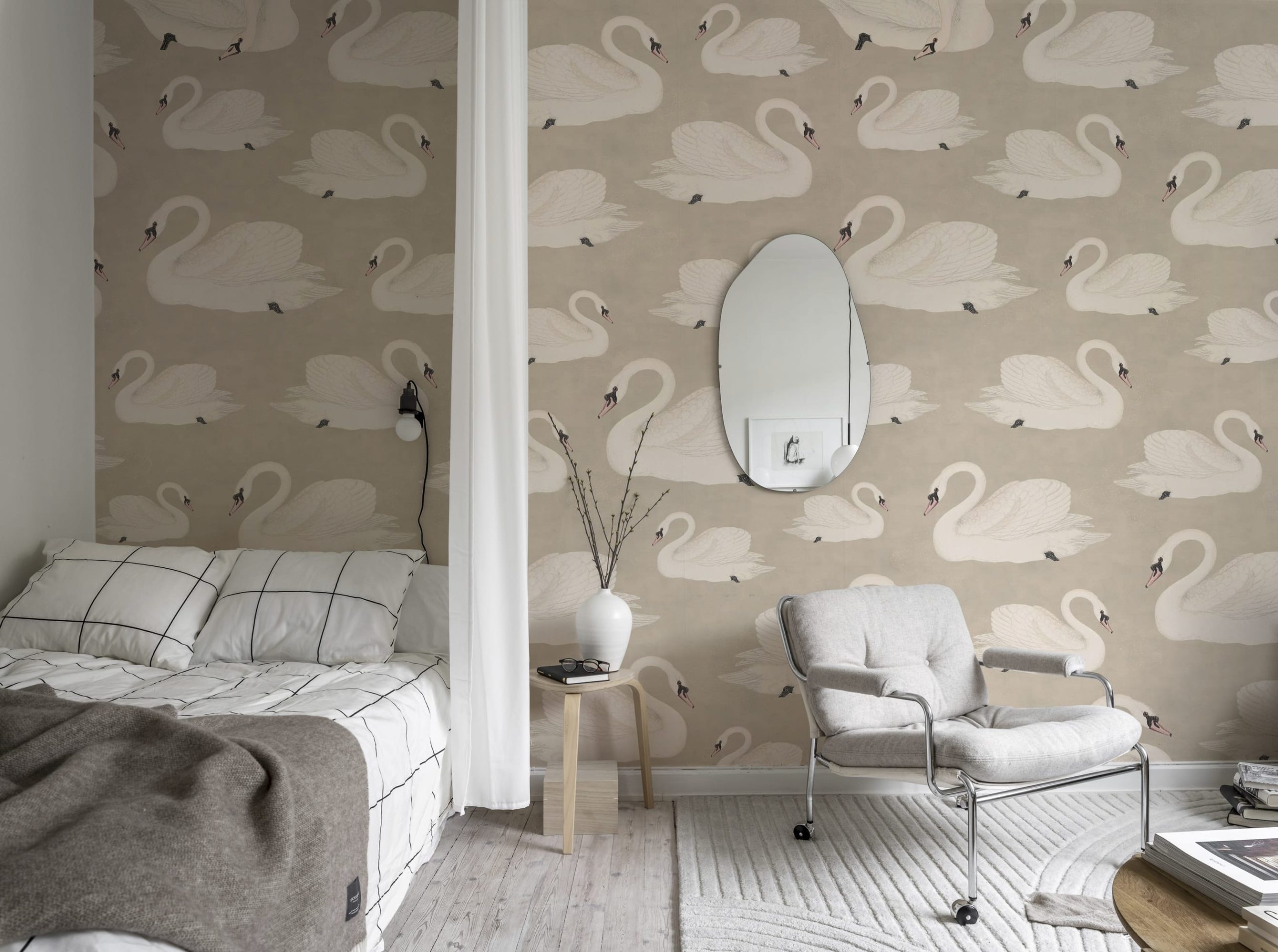 Home Tapet și Fototapet Whooper Swan, Beige, Rebel Walls