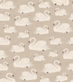 Whooper Swan, Beige – Un design care prezintă lebede frumoase pe un fundal bej deschis, surprinzând un moment liniștit pe malul unui lac.
