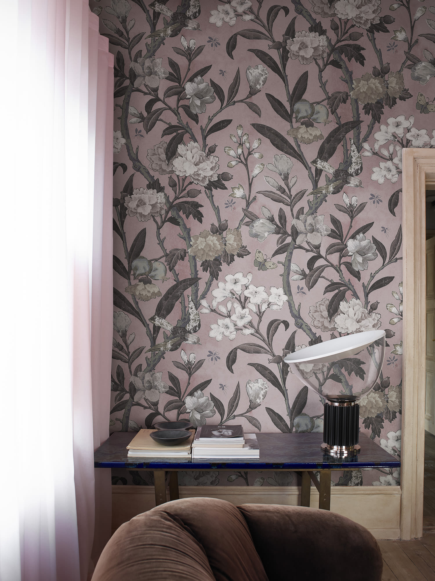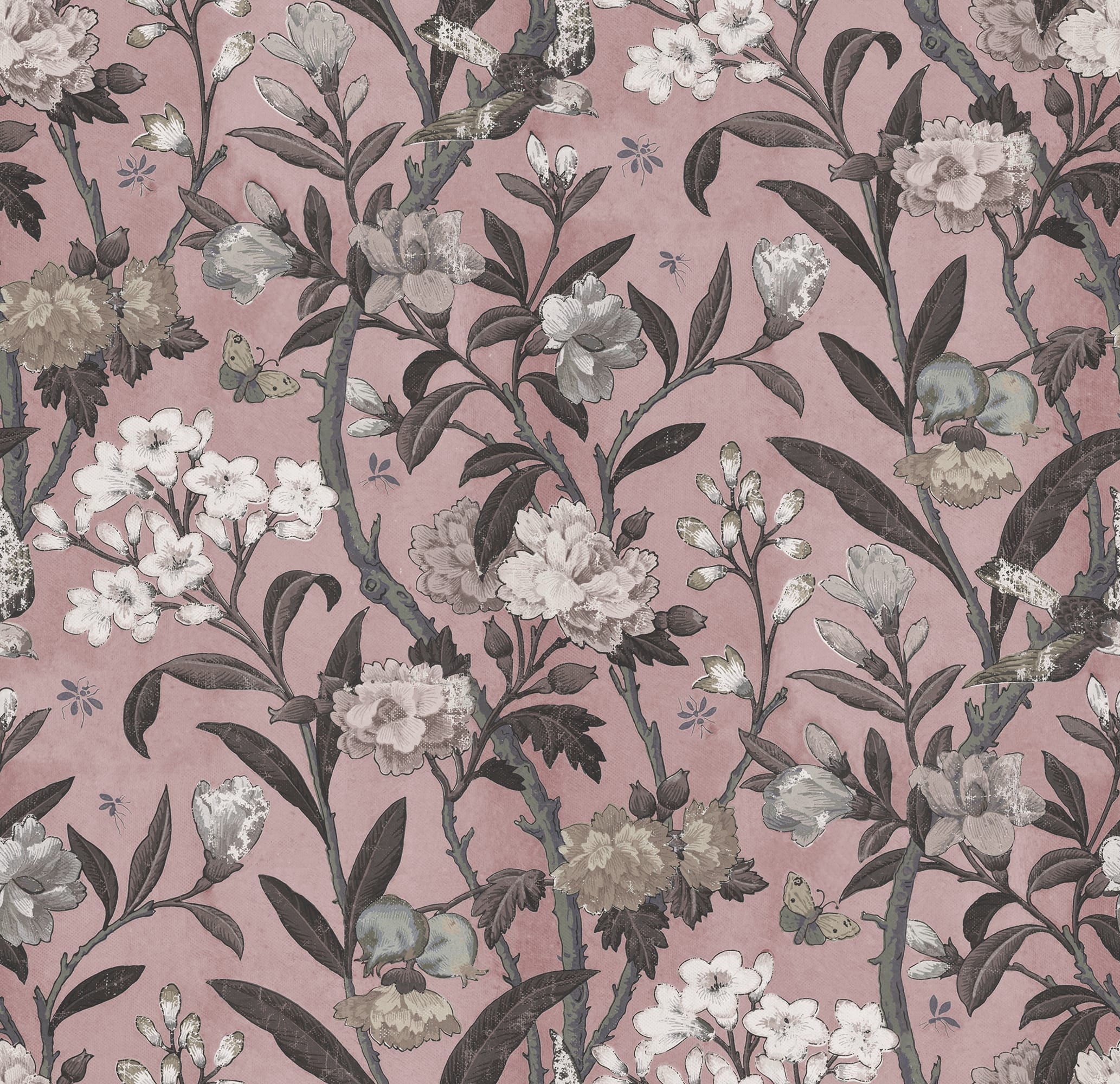 Winding Bloom este un design uimitor de tapet cu flori care urcă grațios spre soare, creând un sentiment de mișcare și vitalitate. Modelul vintage, cu uzură vizibilă și o patină a timpului, spune o poveste a eleganței care dăinuie de-a lungul timpului. Frumusețe naturală și farmec nostalgic la maxim! Culoarea Pink vine în nuanțe de bej, maro, alb și albastru pe o bază roz prăfuit.