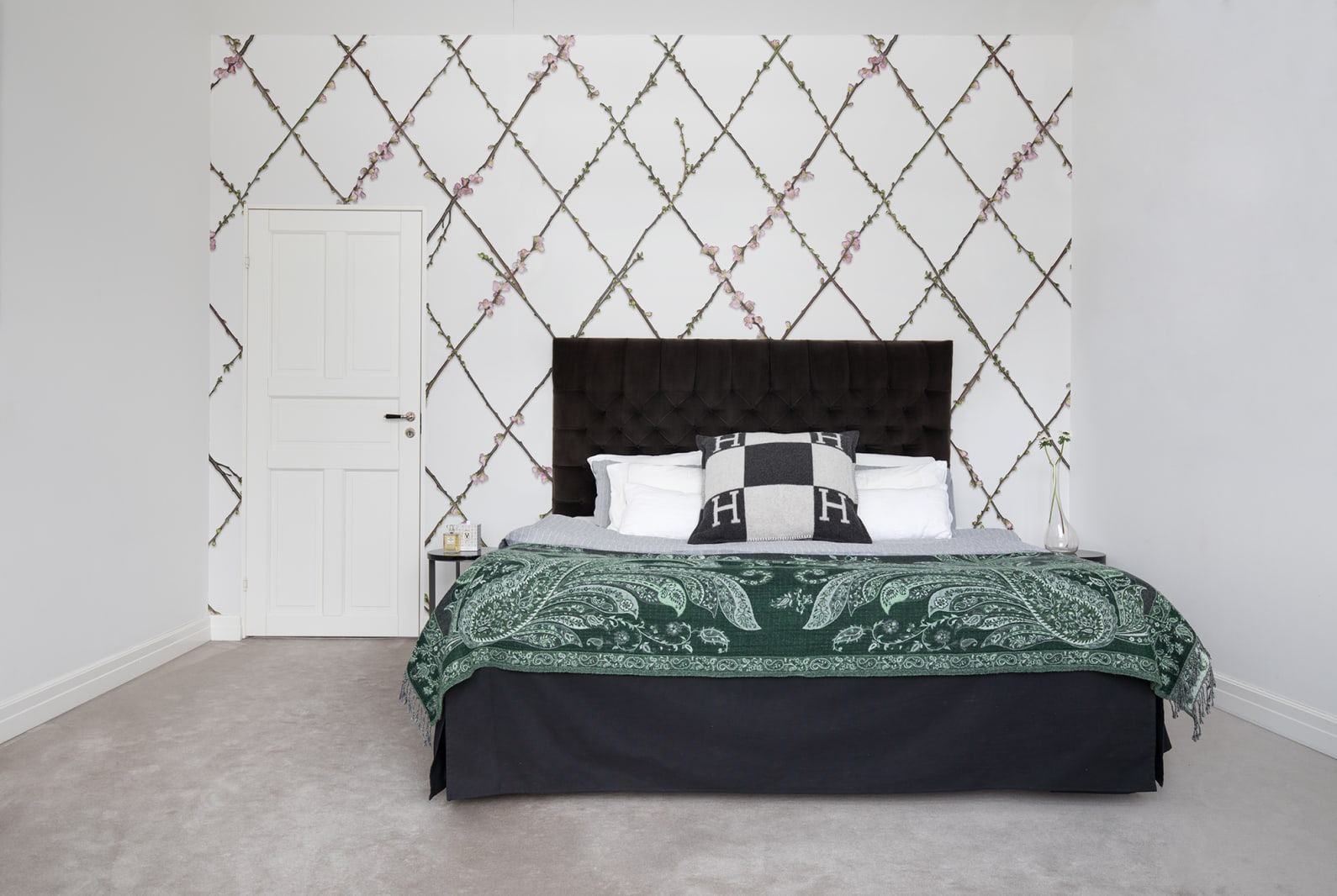 Îmbracă-ți peretele în crenguțe înflorite, împletite într-un frumos gard verde! Motivul floral delicat, în nuanțe de roz și verde, oferă un aer fresh, romantic și boem.
