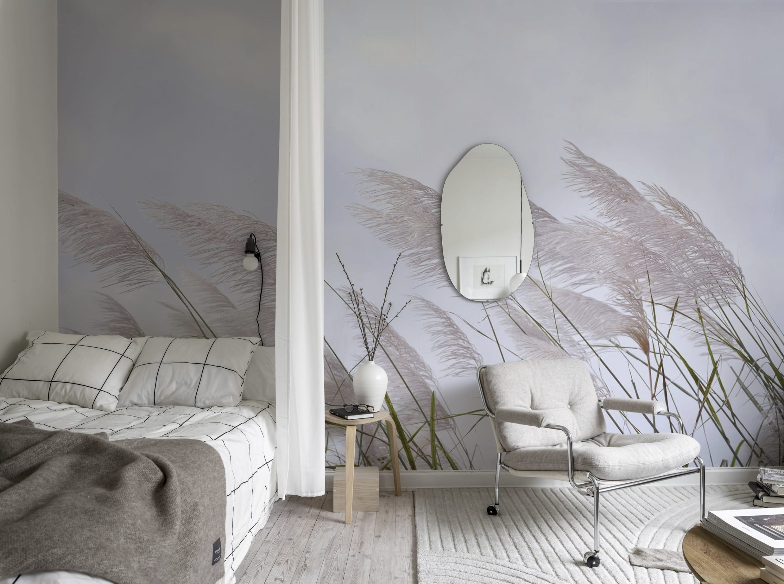 Tapetul Windy Reed – acest design captivant prezintă mișcările grațioase ale ierbii din Pampas sub un cer senin albastru deschis, decorat cu nori pufoși. Briza blândă și imaginile delicate creează o senzație de liniște și relaxare, făcându-l o alegere ideală pentru cei care caută un mediu liniștit și aerisit.