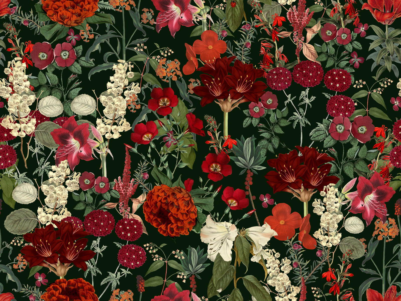 Bine ai venit la Wintergarden, Red, unde căldura florilor roșii înflorește în frigul iernii. Această colecție oferă o expoziție somptuoasă de splendoare florală, bogată în roșu intens și verde luxuriant, pentru a transforma orice perete într-o declarație de eleganță și vitalitate. Fiecare floare este o dovadă de pasiune, creând o tapiserie care este în același timp revigorantă și primitoare. Perfect pentru a adăuga un aer dramatic spațiului tău de locuit sau pentru a învălui zona de luat masa într-un cocon de flori romantice. Îmbrățișează îndrăzneala roșului și grația perenă a unei grădini eterne cu acest design excepțional.