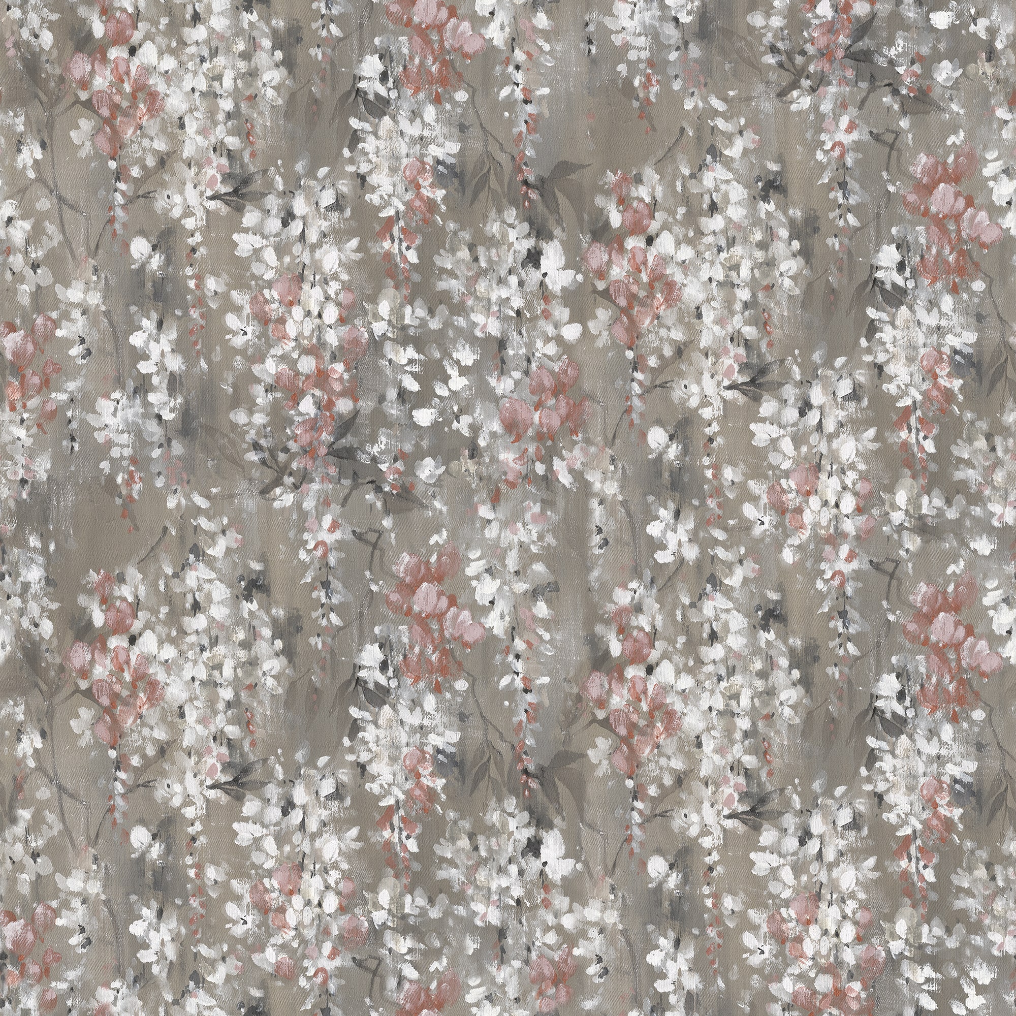 Wisteria, Linen este un design cu adevărat uimitor, pictat manual, cu flori de glicine care curg pe un fundal structurat de in. Florile sunt albe cu elemente superbe de roz prăfuit pe bej închis. Această variantă de culoare mai închisă are acel mic efect extra wow și este o completare artistică perfectă pentru un cadru romantic. Tușele bogate, clar vizibile, aduc un omagiu frumuseții din interiorul imperfectului și neîmblânzitului.