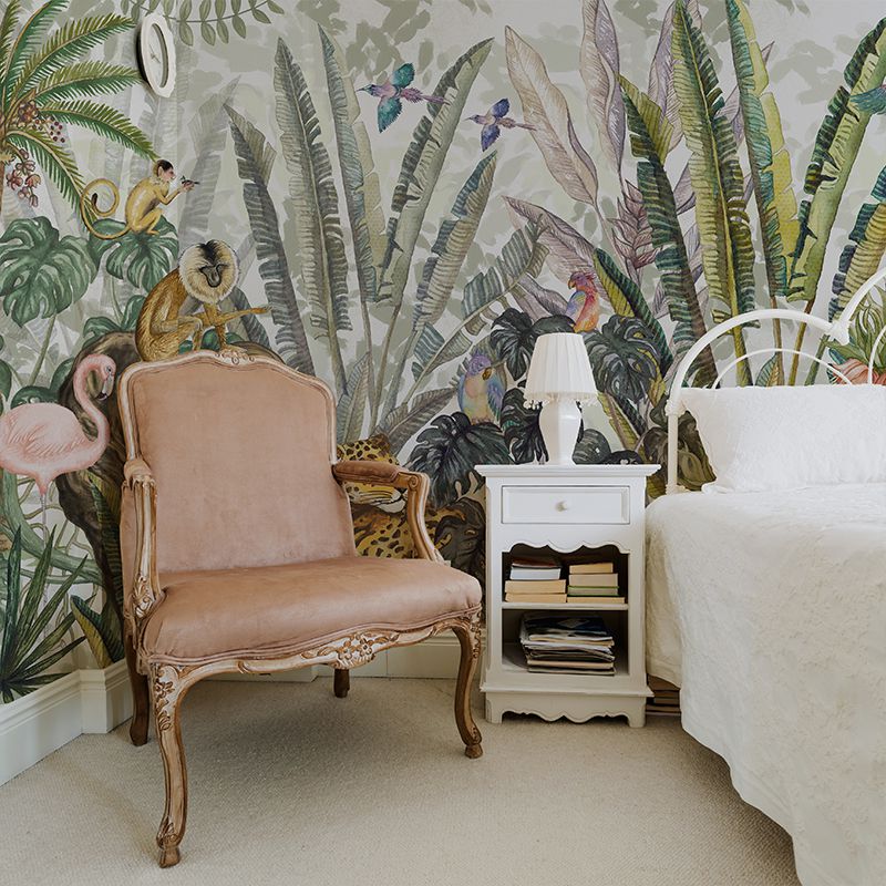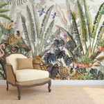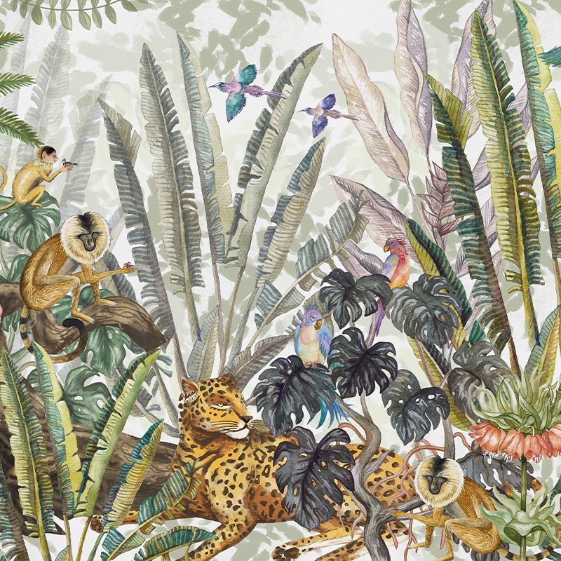 Adaugă o notă exotică spațiului tău cu acest Tropical Story, o tapetă vibrantă cu un design luxuriant, inspirat din junglă.