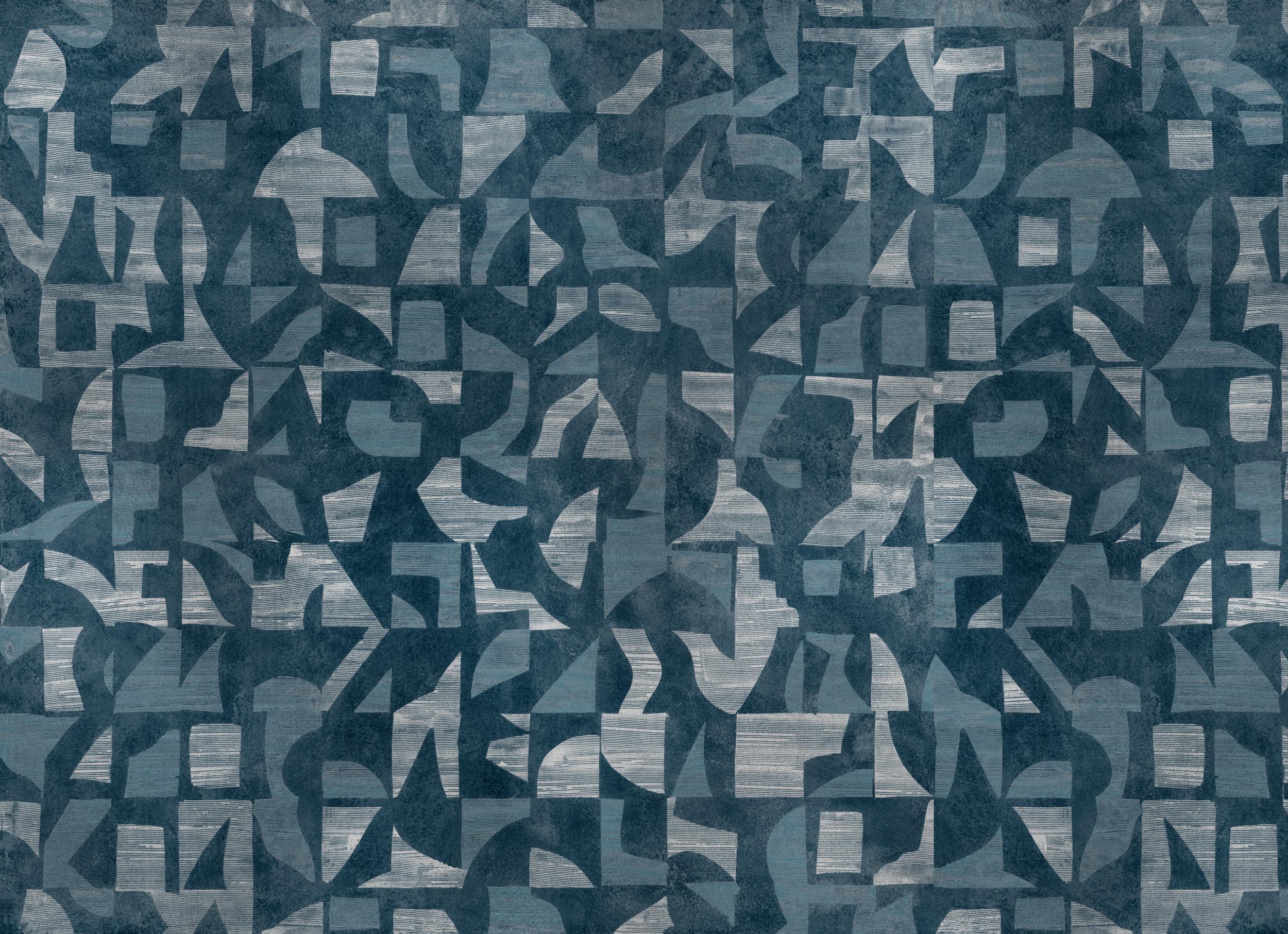 Creează un spațiu modern și sofisticat cu acest tapet cu design abstract geometric în nuanțe de albastru și argintiu. Perfect pentru living sau birou.