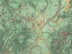 Aceasta este o priveliște de sus, dar ar putea fi o fotografie a unei coroane de copac dintr-o parte. Galben este pentru irigare, verde închis este pentru buștean, verde deschis pentru iarbă și maro pentru zonele aride, uscate. Acest fototapet al unei hărți din 1876 arată parte din New Mexico.