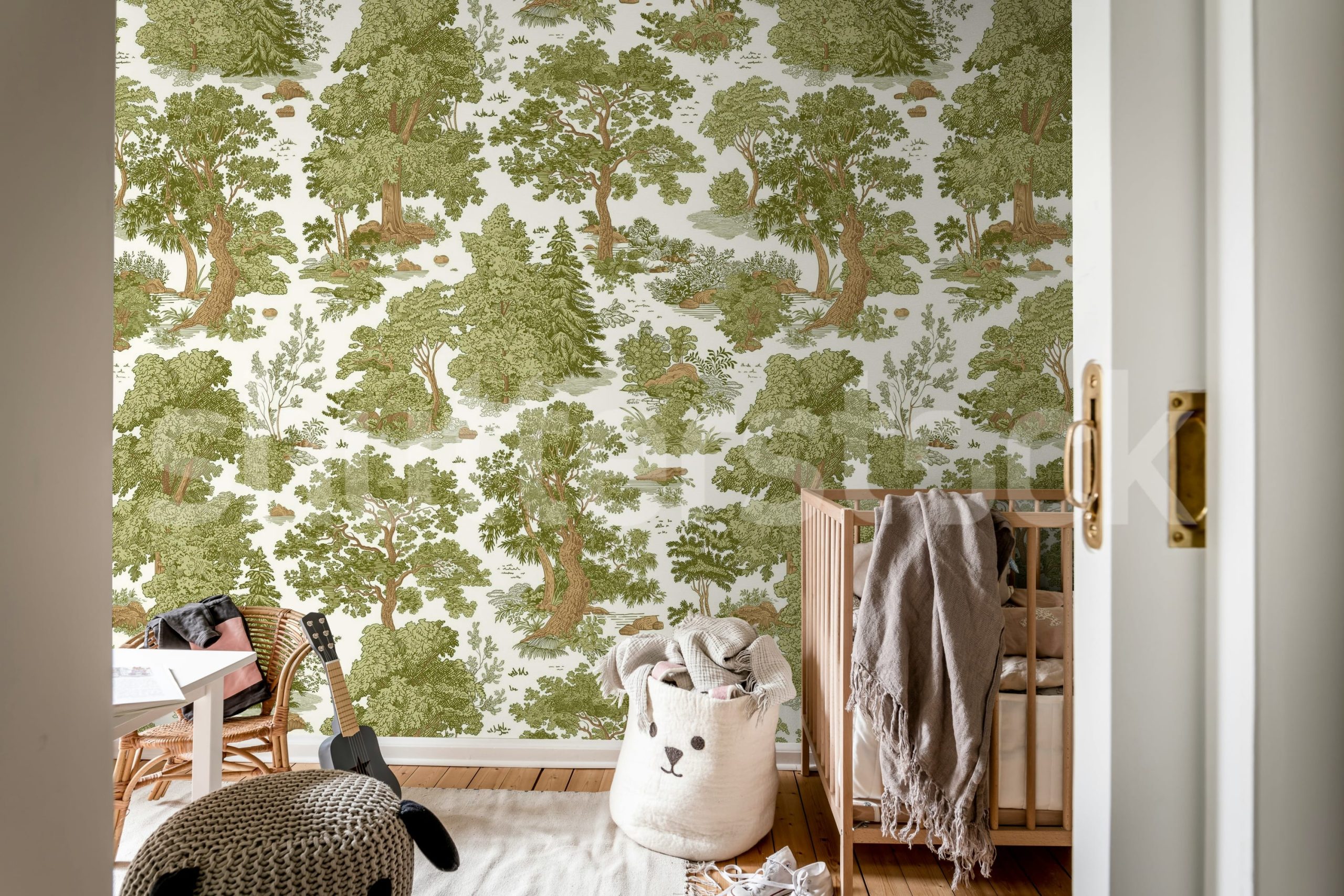 Home Tapet și Fototapet Woodland Toile, Light Green, Rebel Walls