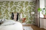 Tapet cu un design clasic, inspirat de natură, în nuanțe delicate de verde. Perfect pentru a crea o atmosferă relaxantă și primitoare.